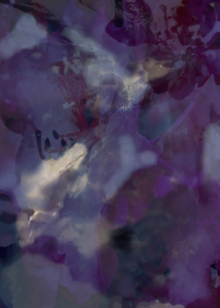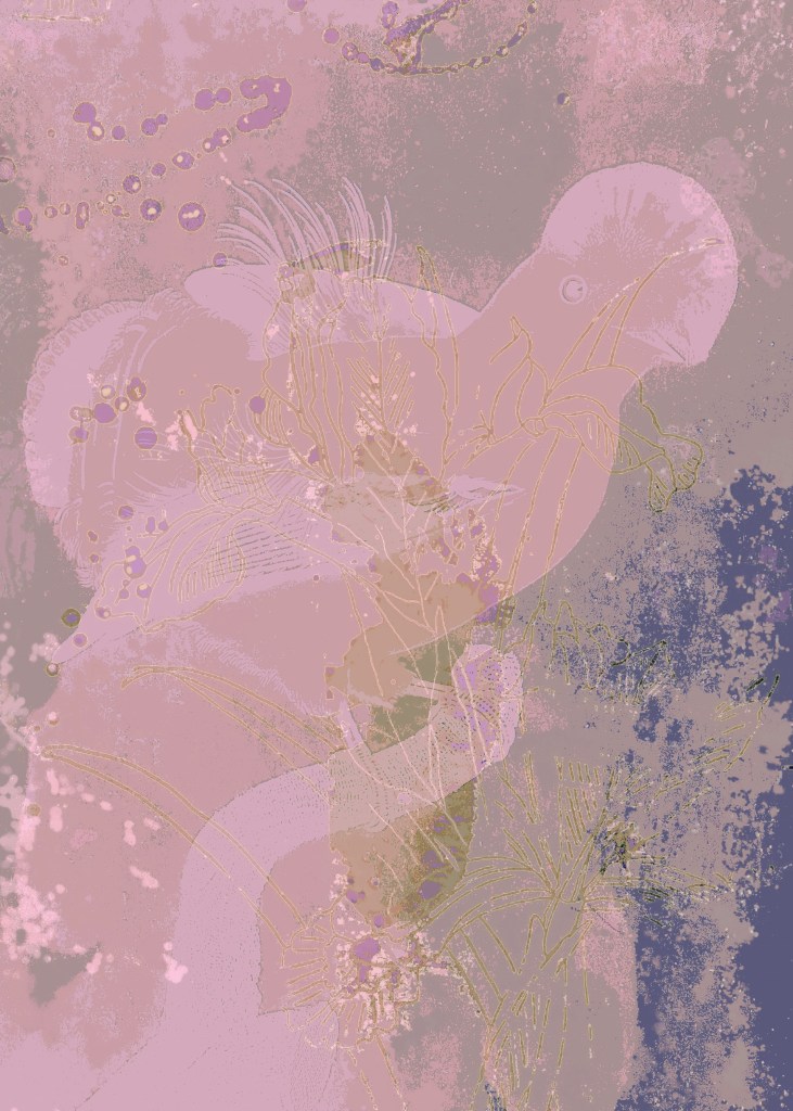 Kleuren, structuren, details van de natuur zijn laag voor laag toegevoegd en uiteindelijk gevangen in een beeldsynthese. Vogels en bloemen worden doorzichtig in hun omgeving, ze zijn zelf omgeving geworden, in meerdere lagen.